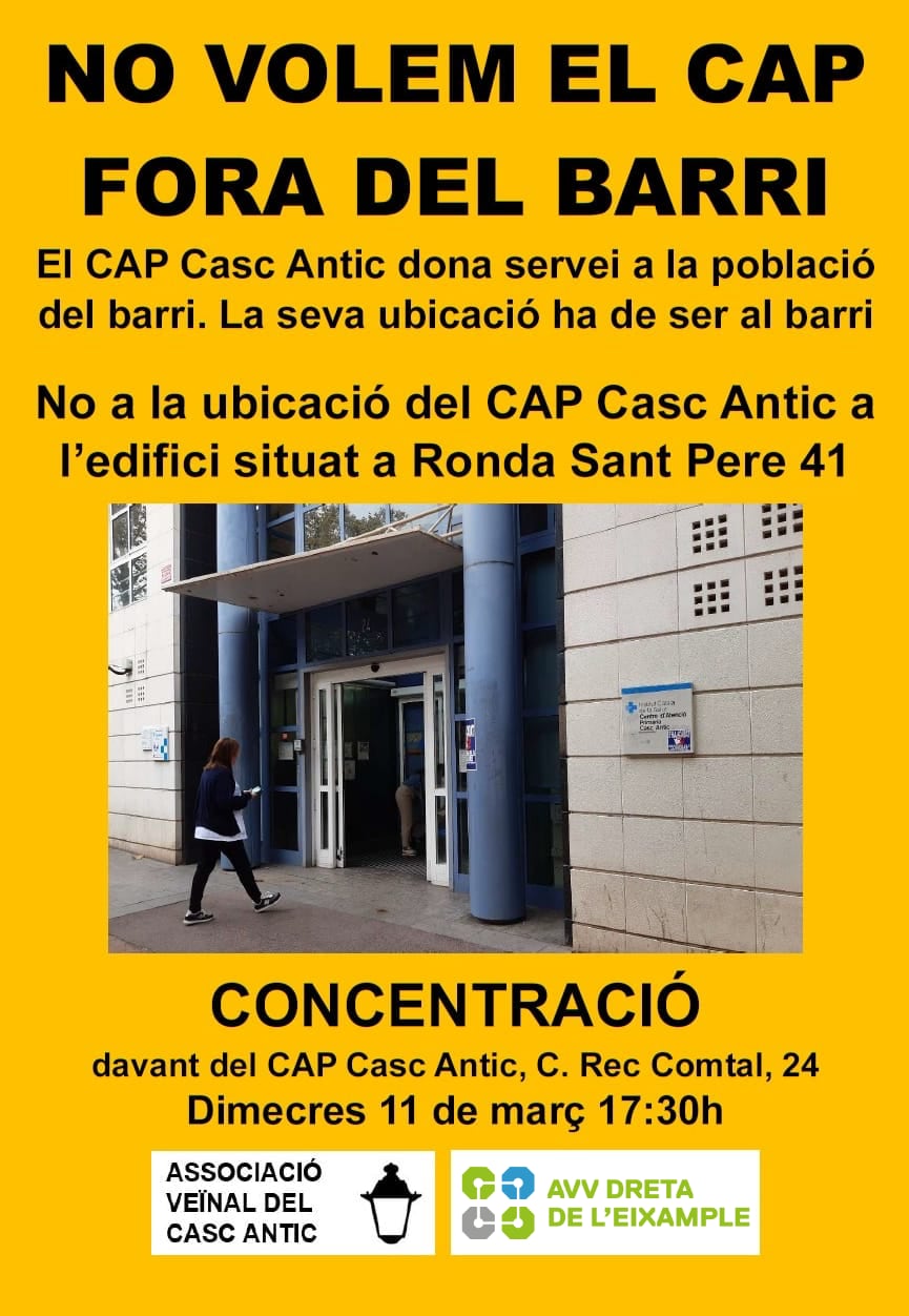 És el moment de fer costat al veïnat del Casc Antic i de defensar un CAP al barri, per al barri. Des de l’AVVDE us animem a participar en aquesta concentració i a sumar-vos a una reivindicació que defensa una sanitat pública propera, accessible i arrelada al territori.
